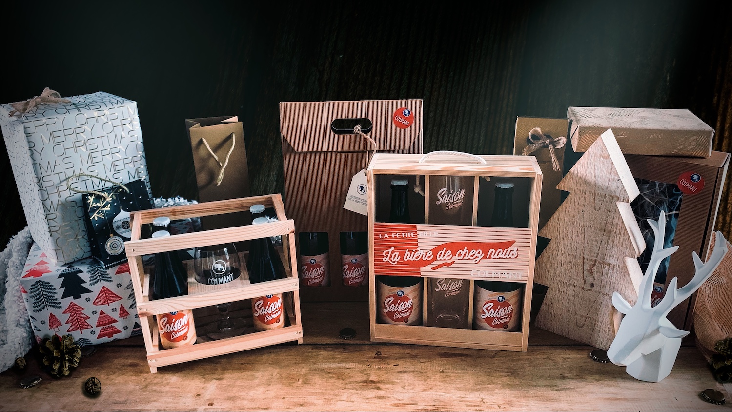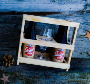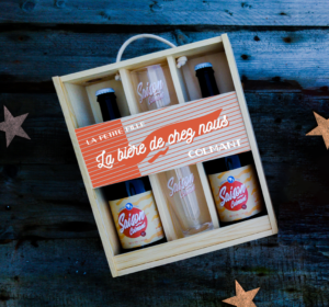 🍻 Coffret « P’tite gayole » : casier en bois contenant 4 bouteilles de 33 cl et un verre (25,00 €)